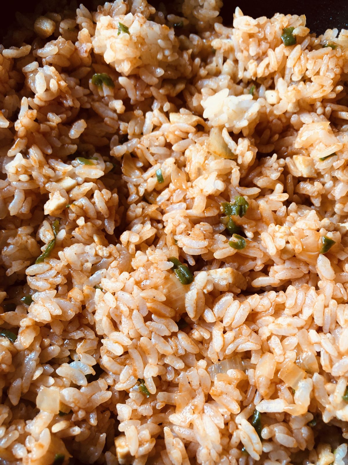家庭菜園のピーマン玉ねぎ、小さく切った鶏胸肉でチキンライスを作り、7人分に分け、ひたすら包みました。