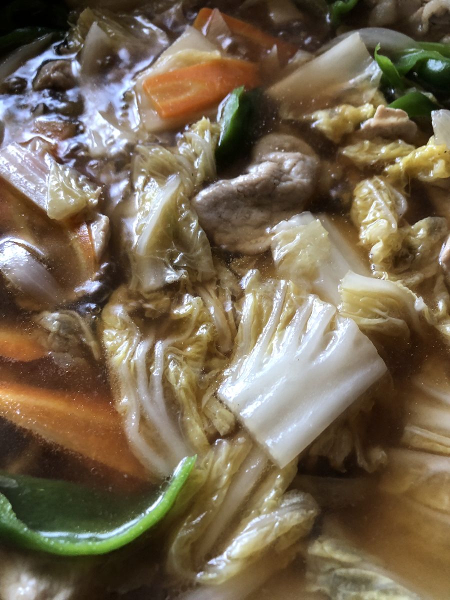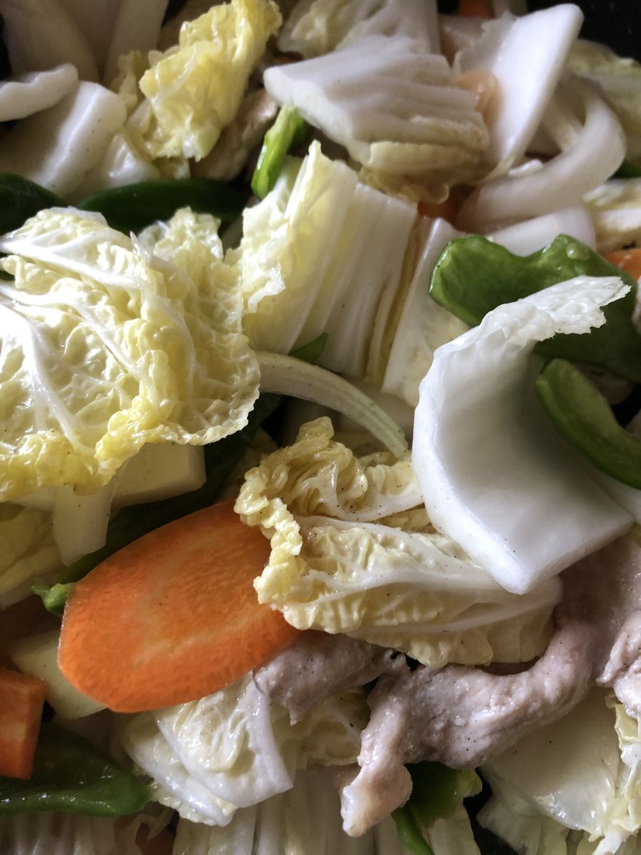白菜がない時は、チンゲンサイ、キャベツ、もやしなんかも使ったり。冷蔵庫の残ったもので作れるので、ありがたい料理です。