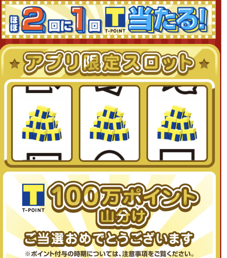 今日まで登録時のくじの一等の確率が5倍にアップしています。一等が当たるとすぐに交換できます。