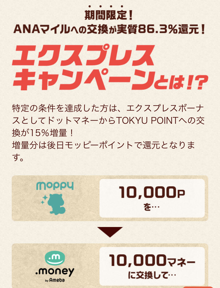 ドットマネーから東急ポイントに交換