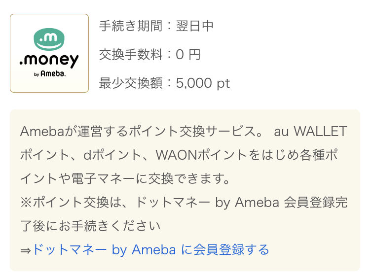 まずはポイントを、ドットマネーに交換