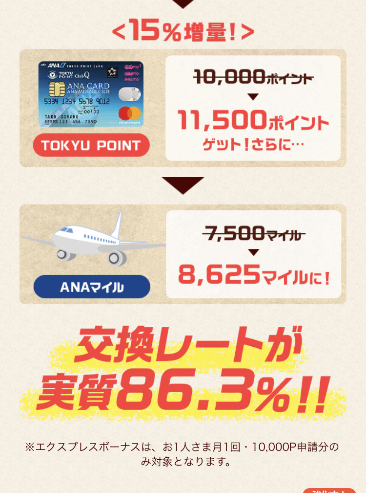 東急ポイントからマイルに交換