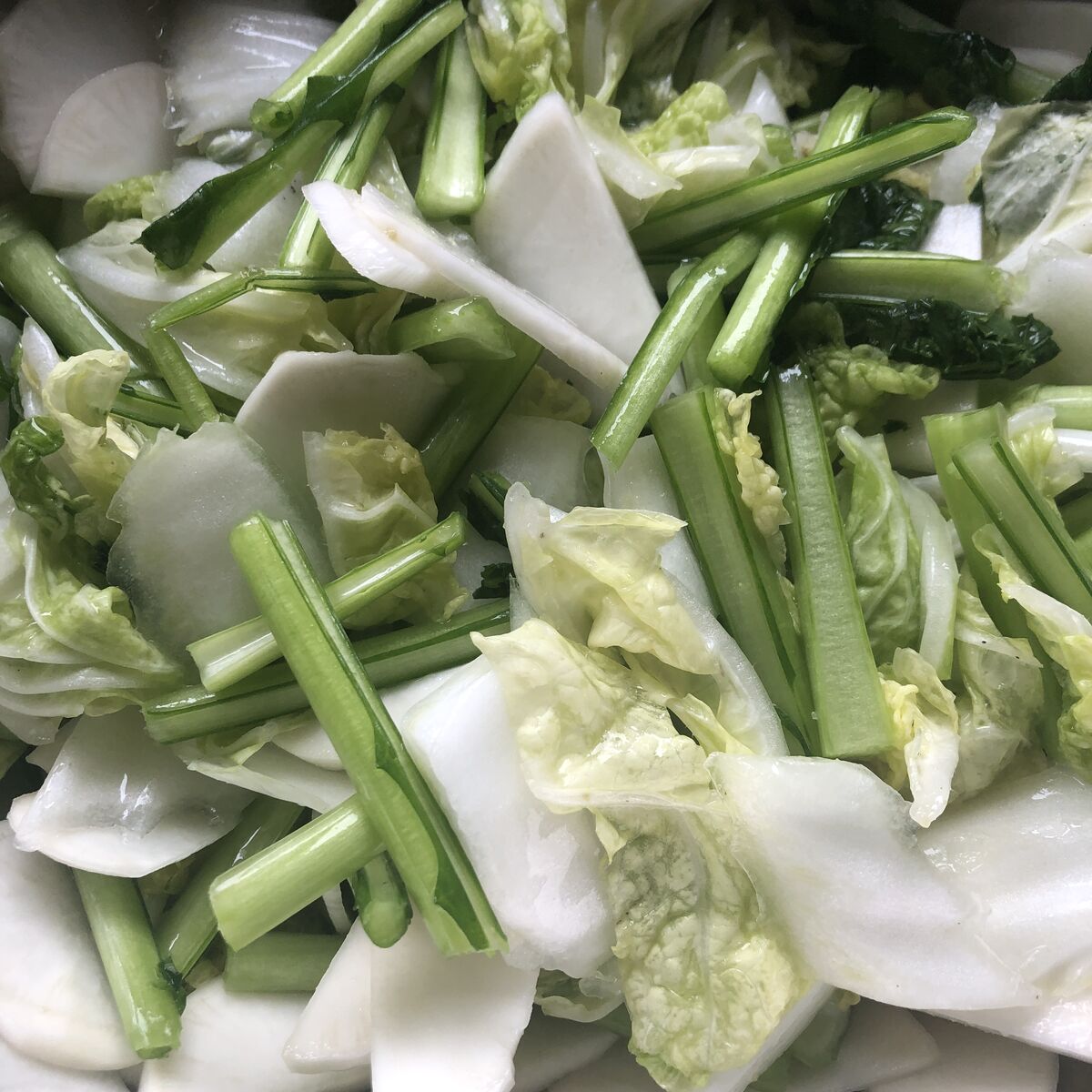 野菜とキノコとベーコンを、オリーブオイルで炒めたもの。