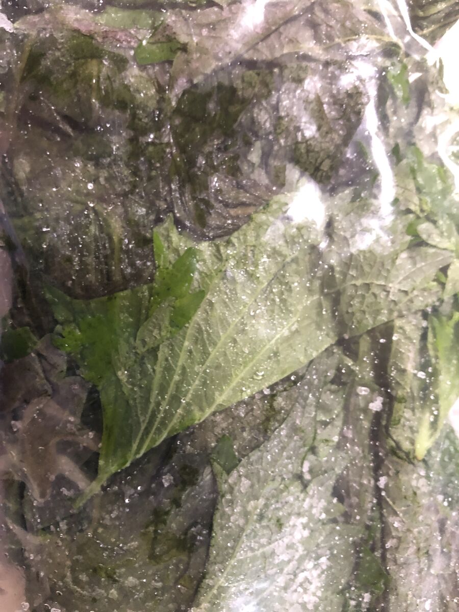 塩漬けのシソと、しらす、刻んだカリカリ梅を混ぜたご飯。