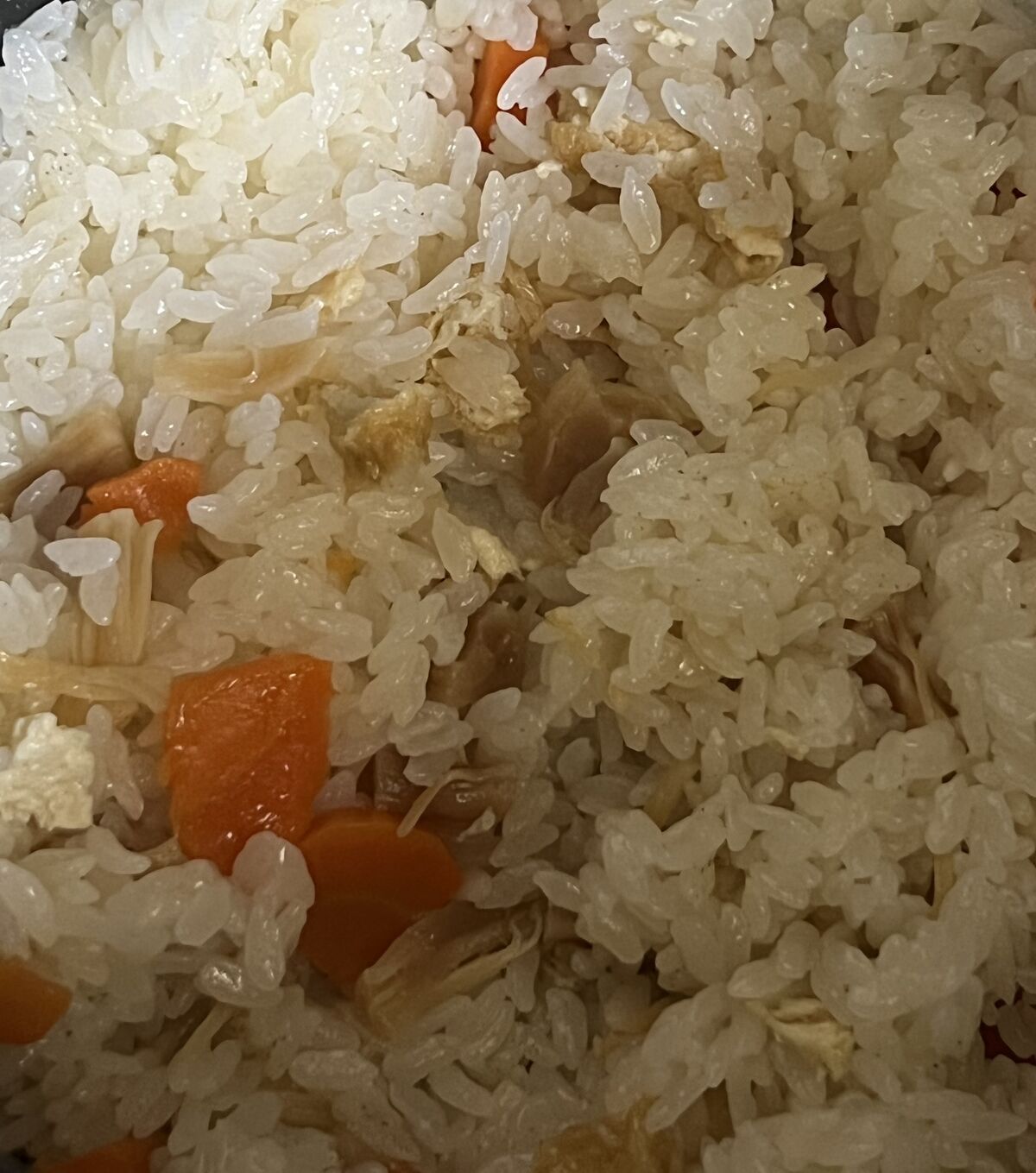他にカニカマ玉あんかけ、大根と人参の酢の物、ワカメスープの晩ごはんでした。