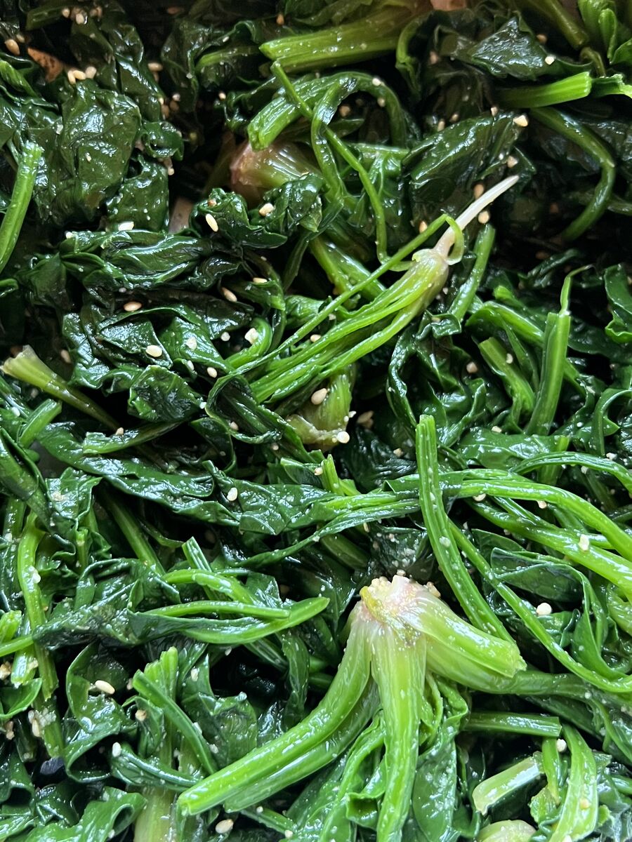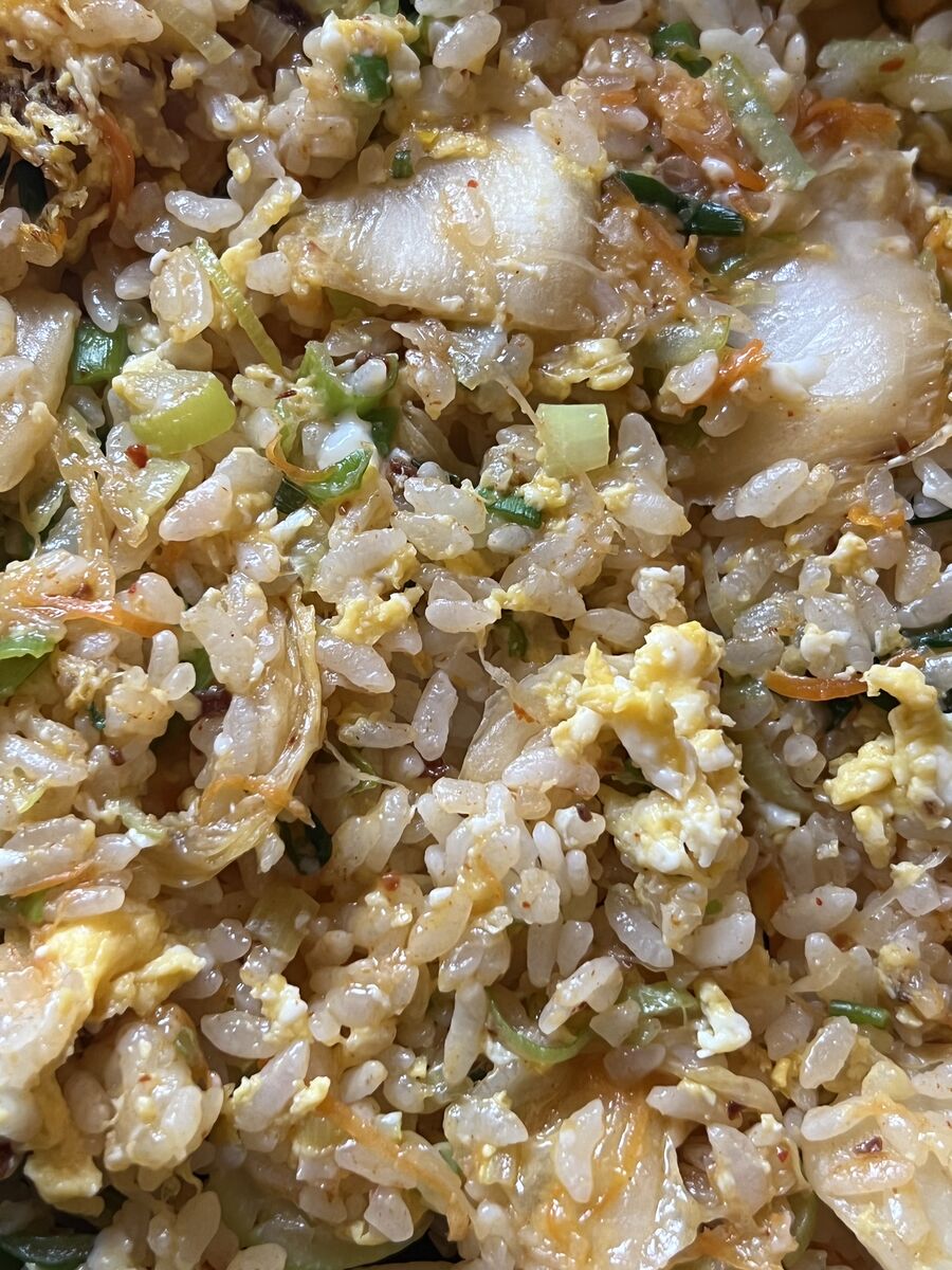 キムチチャーハンと、白菜と椎茸と玉ねぎとエビのあんかけ、ほうれん草のナムル風、お味噌汁でした。