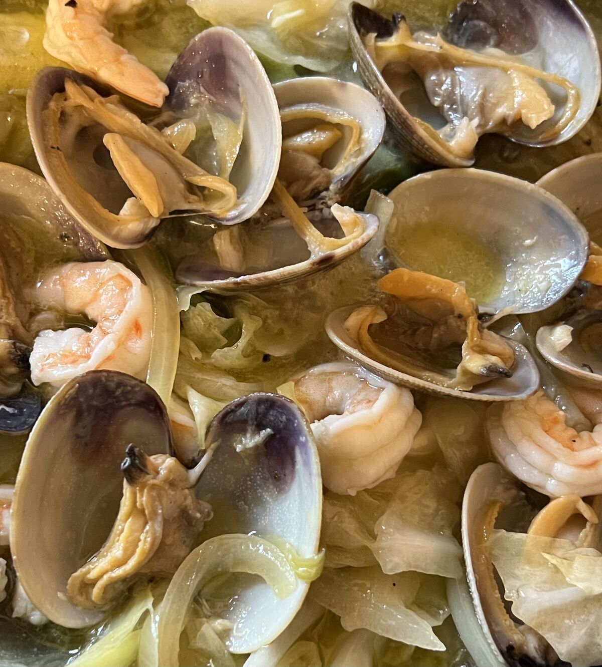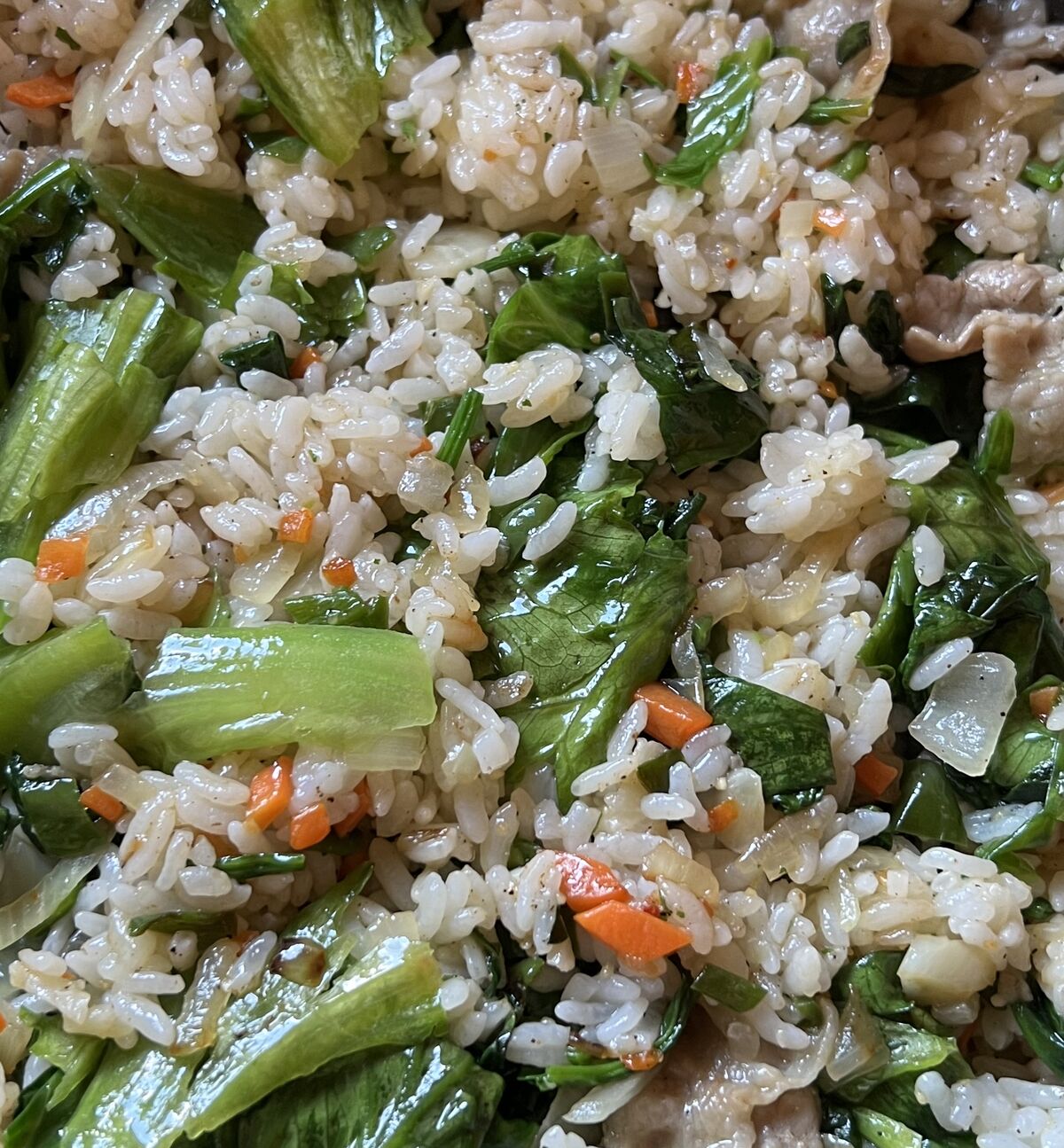 他に、大根のピリ辛炒め、千切りキャベツの残りとハムのサラダ、漬物、お味噌汁でした。