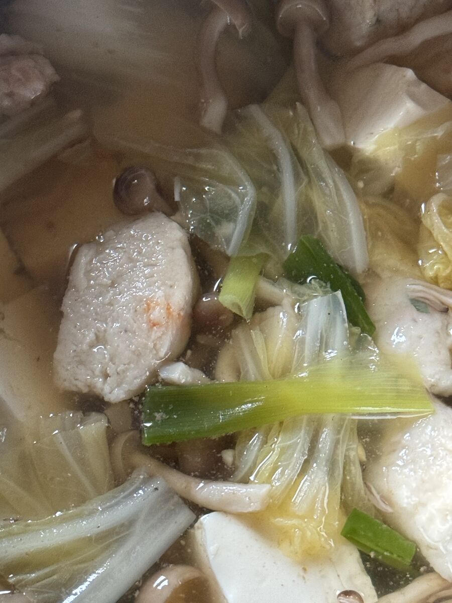 他に、ほうれん草と小エビの炒め物、ひき肉とエンドウの煮物、漬物、お味噌汁でした。