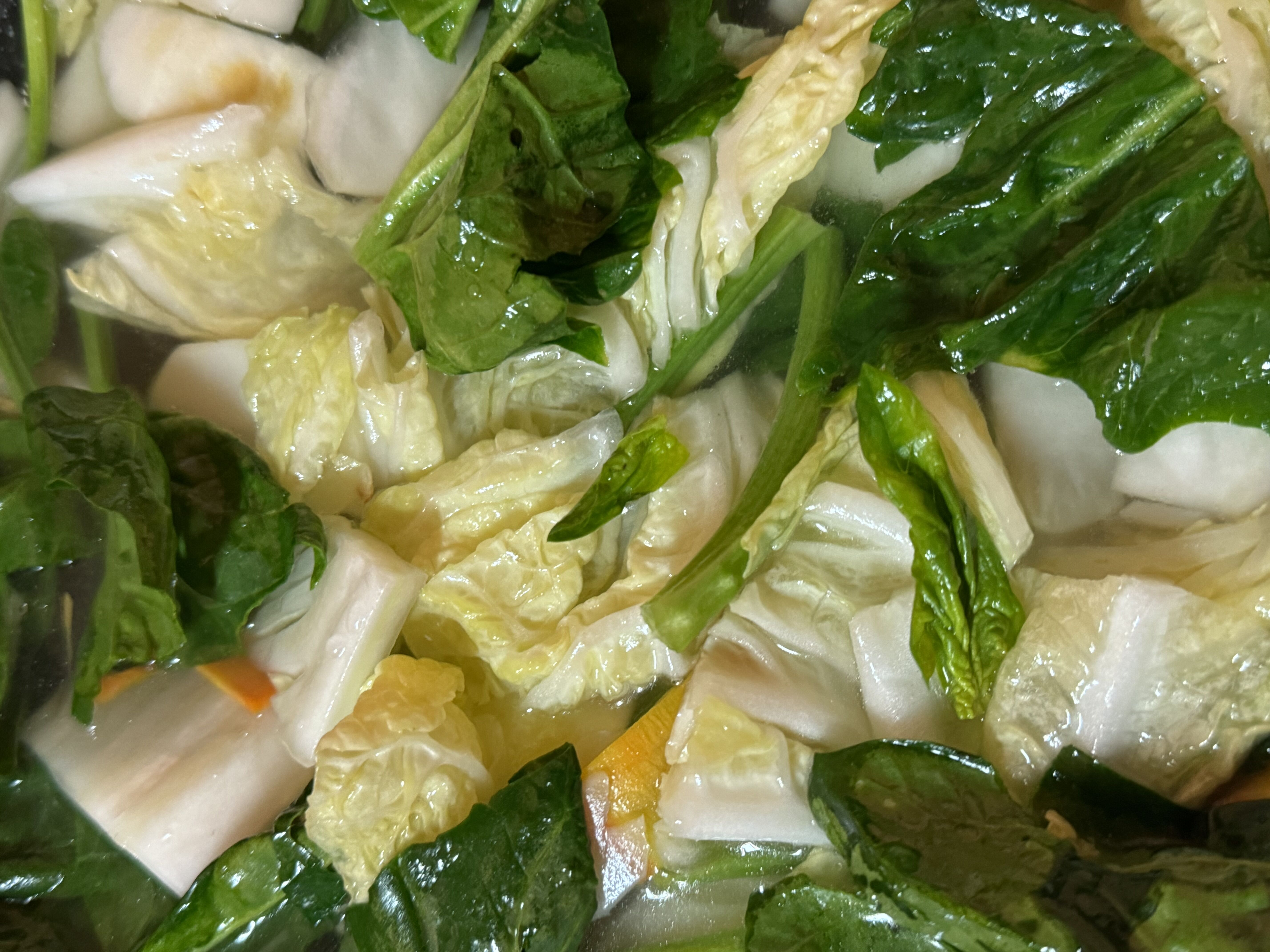 卵ペーストをレタスに乗せたサラダ、漬物、お味噌汁でした。