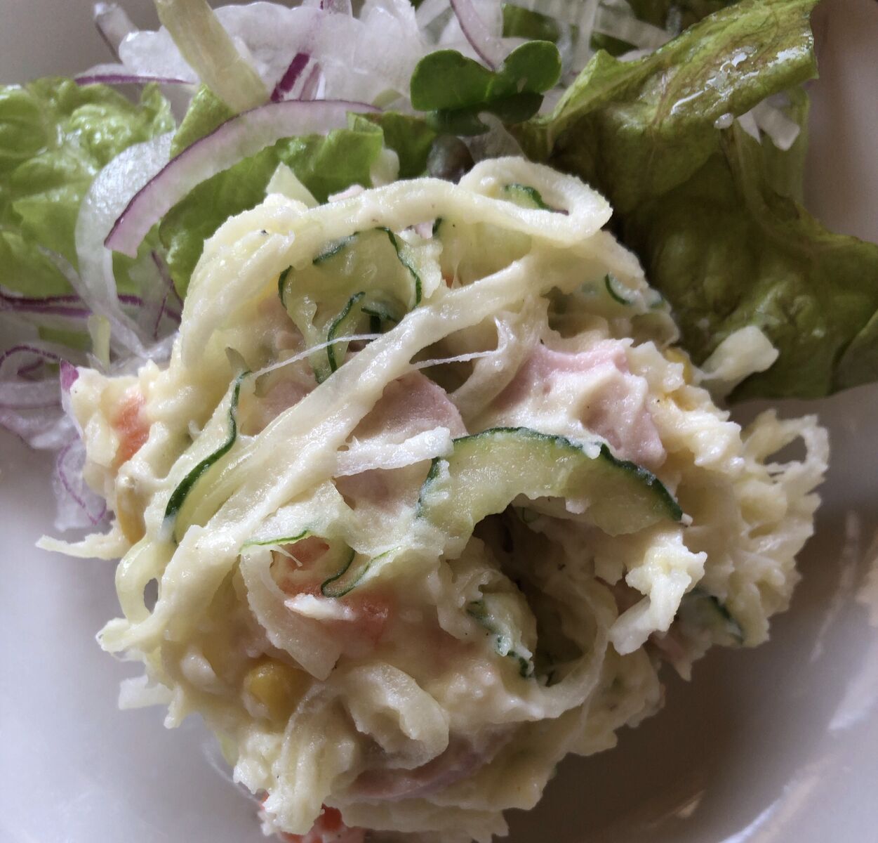 アルバイト先の居酒屋さんでは、ポテトサラダをアイスクリーム屋さんで使うあいすをコーンに乗せるもの?で盛り付けしていて、すごくきれいです。