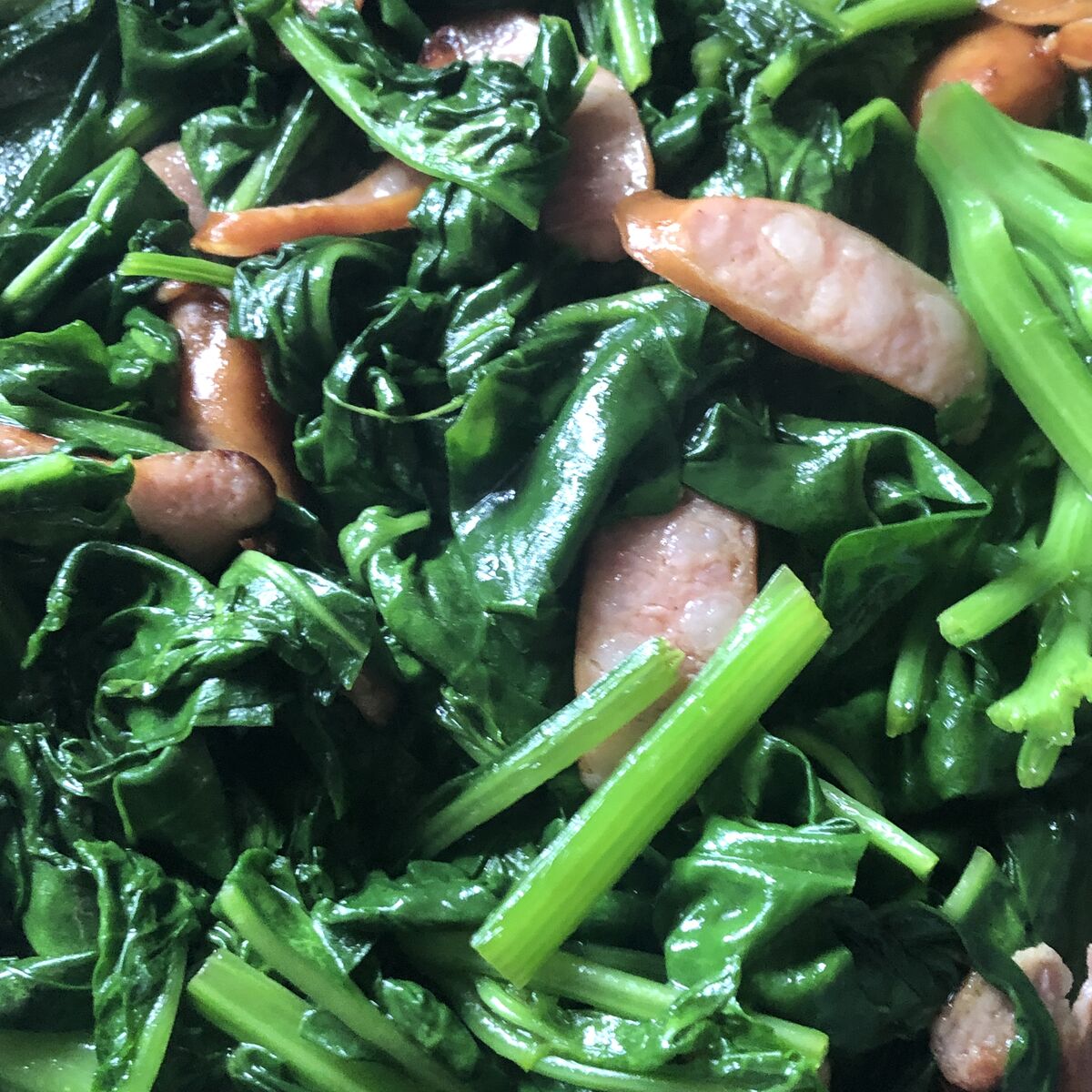 義父のリクエストの、ウインナーとほうれん草炒め。