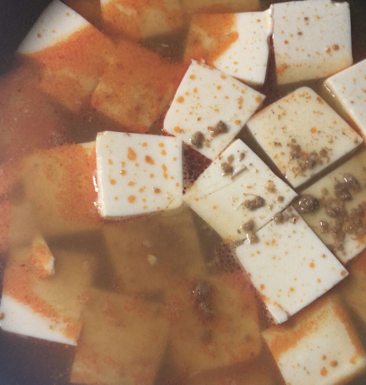 麻婆豆腐の素を使って、スンドゥブ風の汁物。