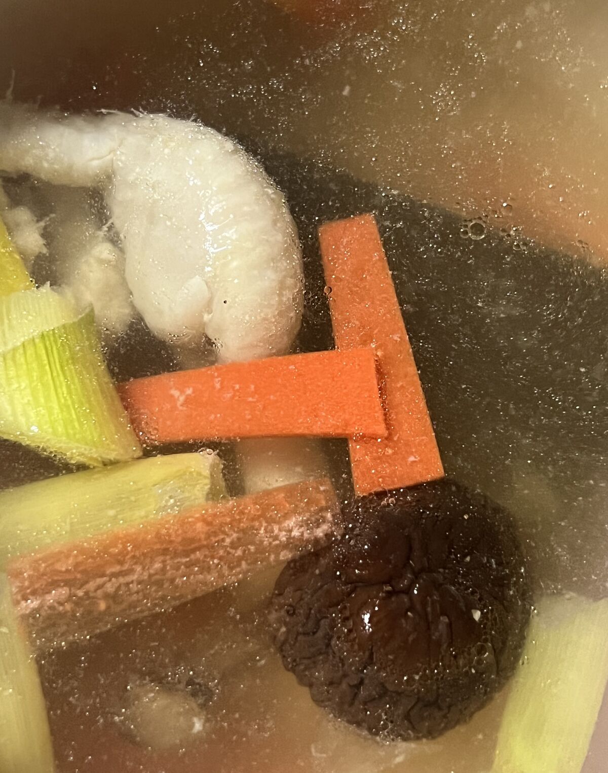 鶏皮や、野菜の端、干し椎茸、昆布でスープを取って、塩ラーメンを作りました。