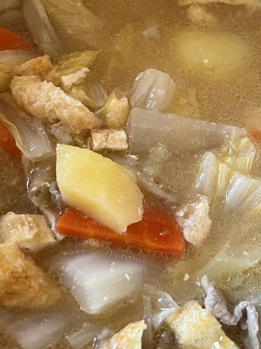 他に、もやし、キャベツ、ニラ、鶏肉の甘辛炒め、漬物でした。