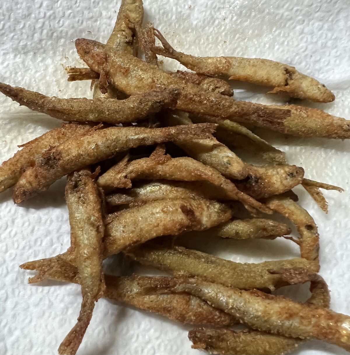 昨日マスターが「たくさんもらったから」と持たせてくれた、わかさぎ。