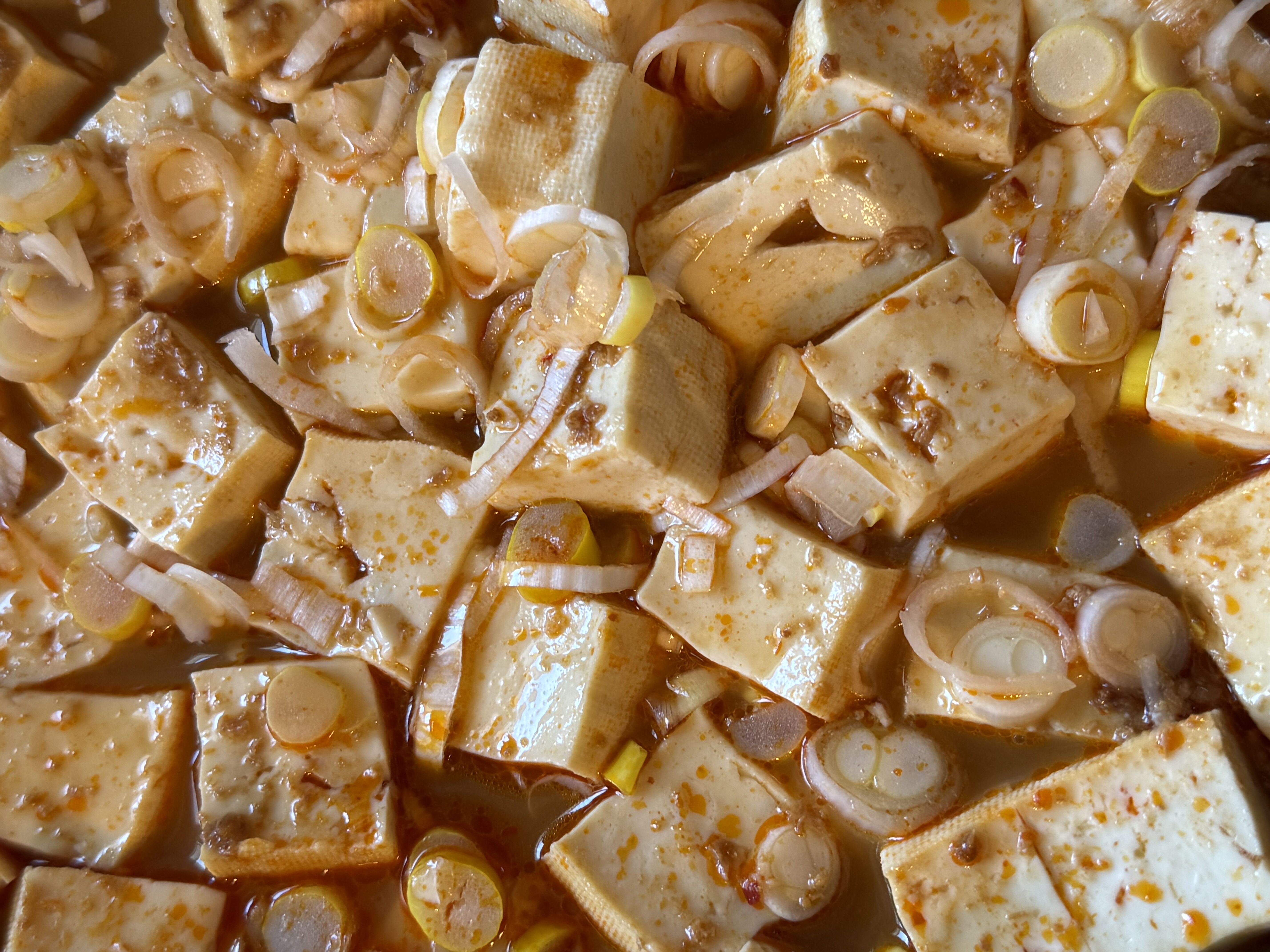夫と作りましたが、きちんと豆腐を水切りして、四角く切って、本格的です。