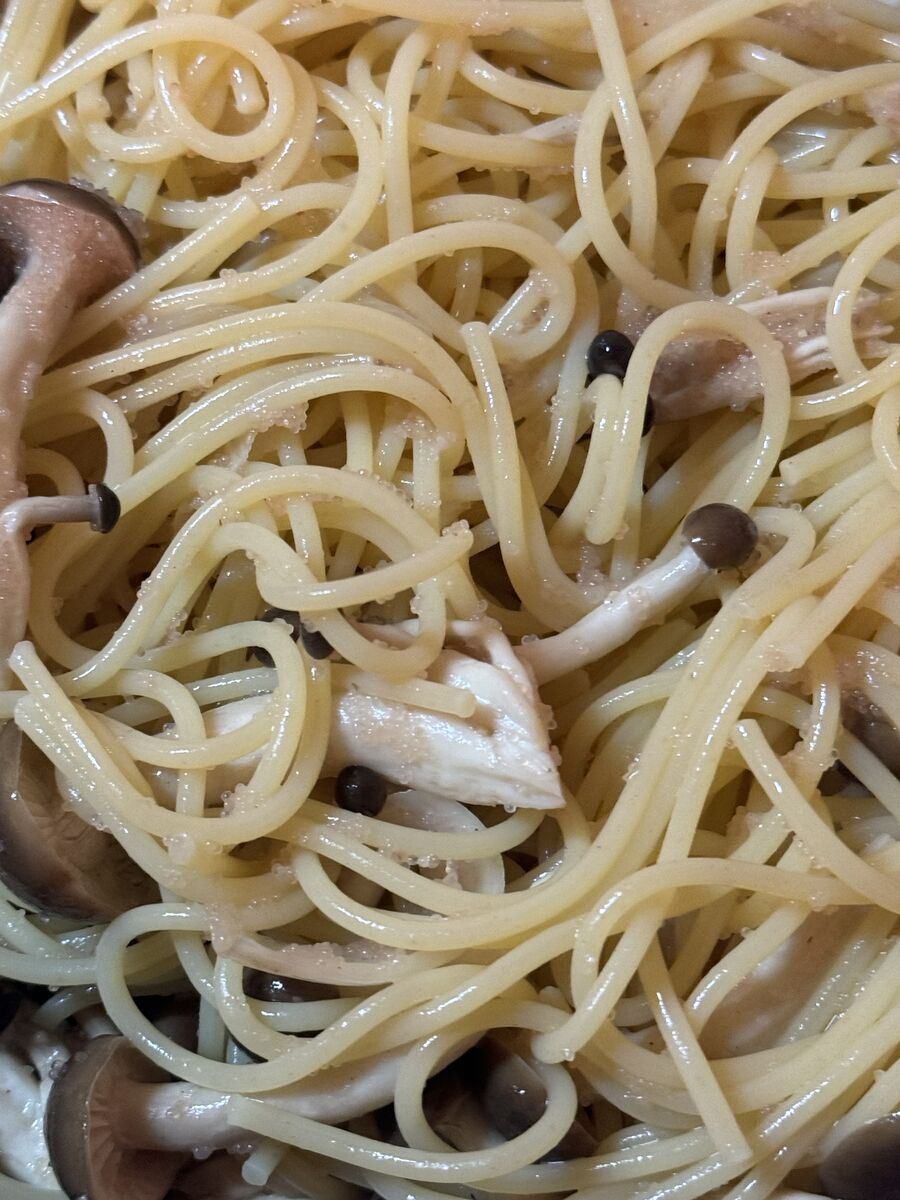 しめじとたらこのスパゲッティ、ほうれん草炒め、たまごスープでした。