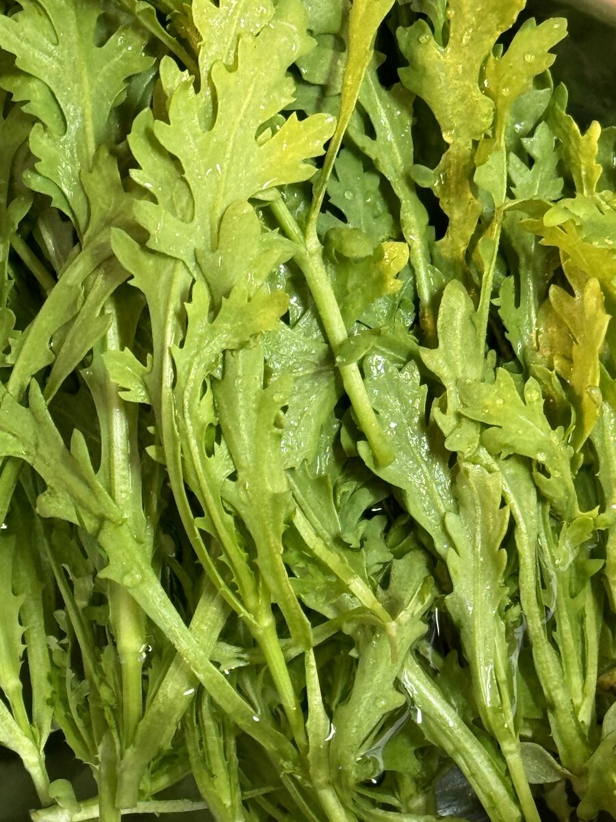 春菊を使って、酢味噌あえ、漬物、お味噌汁でした。