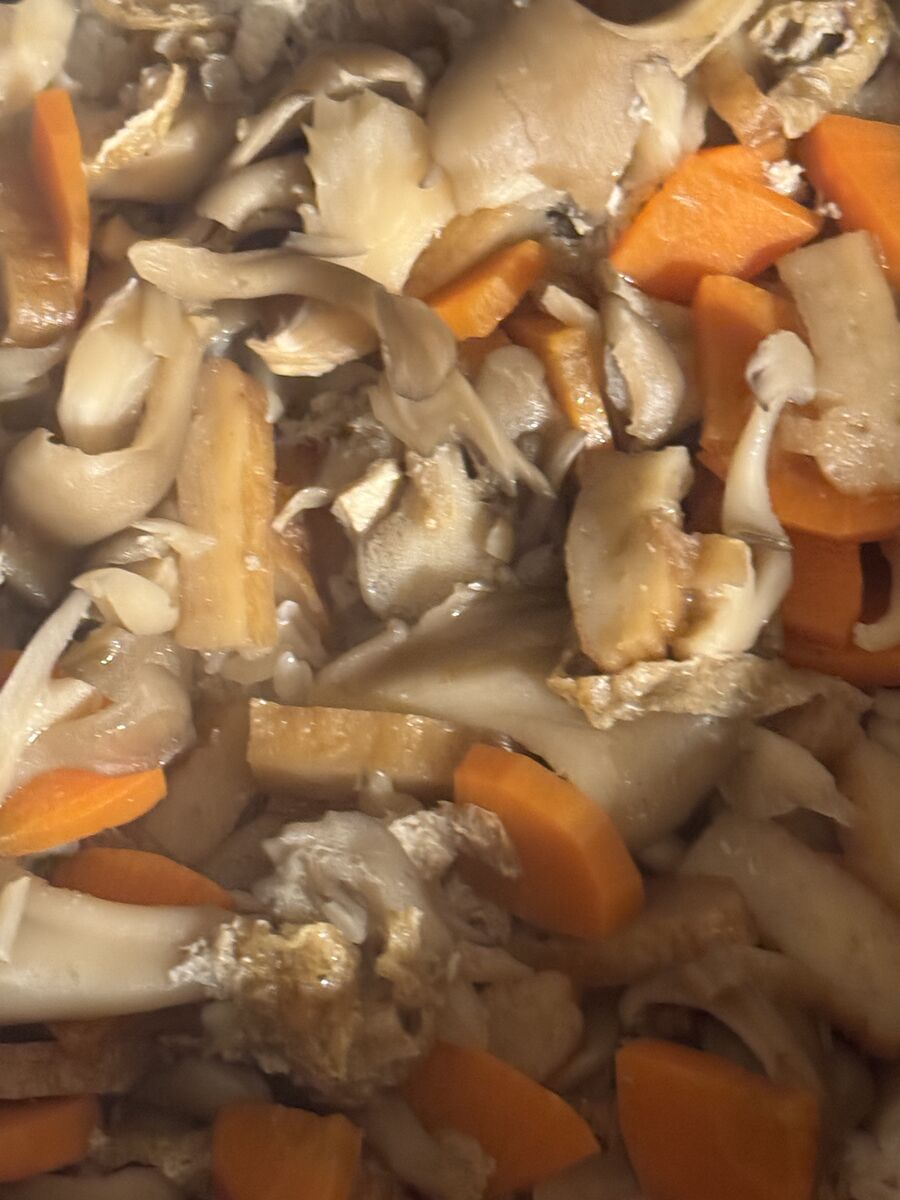 炊き込みご飯、豚しゃぶサラダ、卵焼き、漬物、お味噌汁でした。