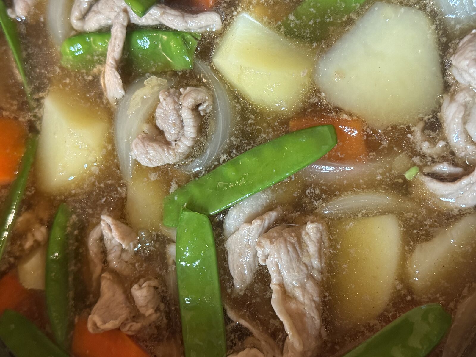 義祖父母のエンドウを入れるだけで、グッと華やかな肉じゃが、シャケのバター焼き、もやしのサラダ、漬物、お味噌汁てました。