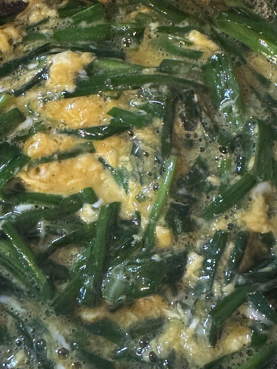 ニラ玉、漬物、お味噌汁でした。
