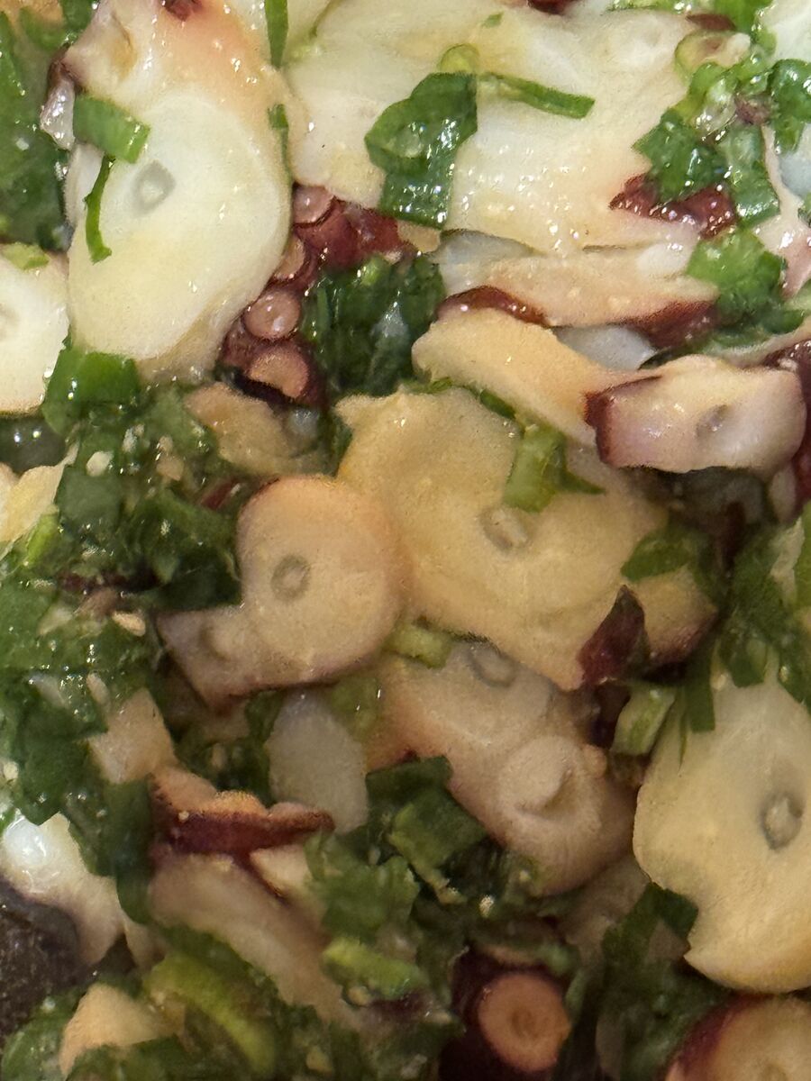 タコのネギ味噌や、トマトのサラダ、油揚げの納豆はさみ焼き、茹でブロッコリーを準備しました。