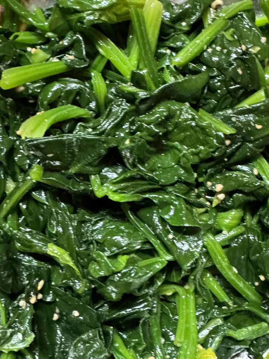 また、山菜じいちゃんが差し入れしてくれた、ほうれん草で胡麻和え。